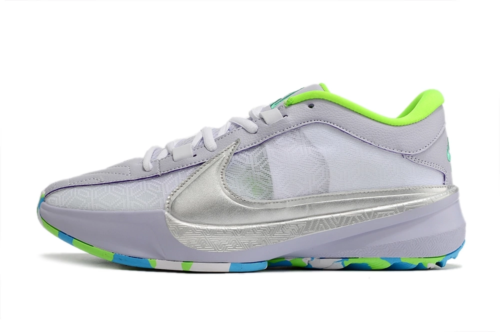 Купите Nike Zoom Freak 5 White/Green и раскрасьте свои выступления ярким светлым и энергичным зелёным оттенком!